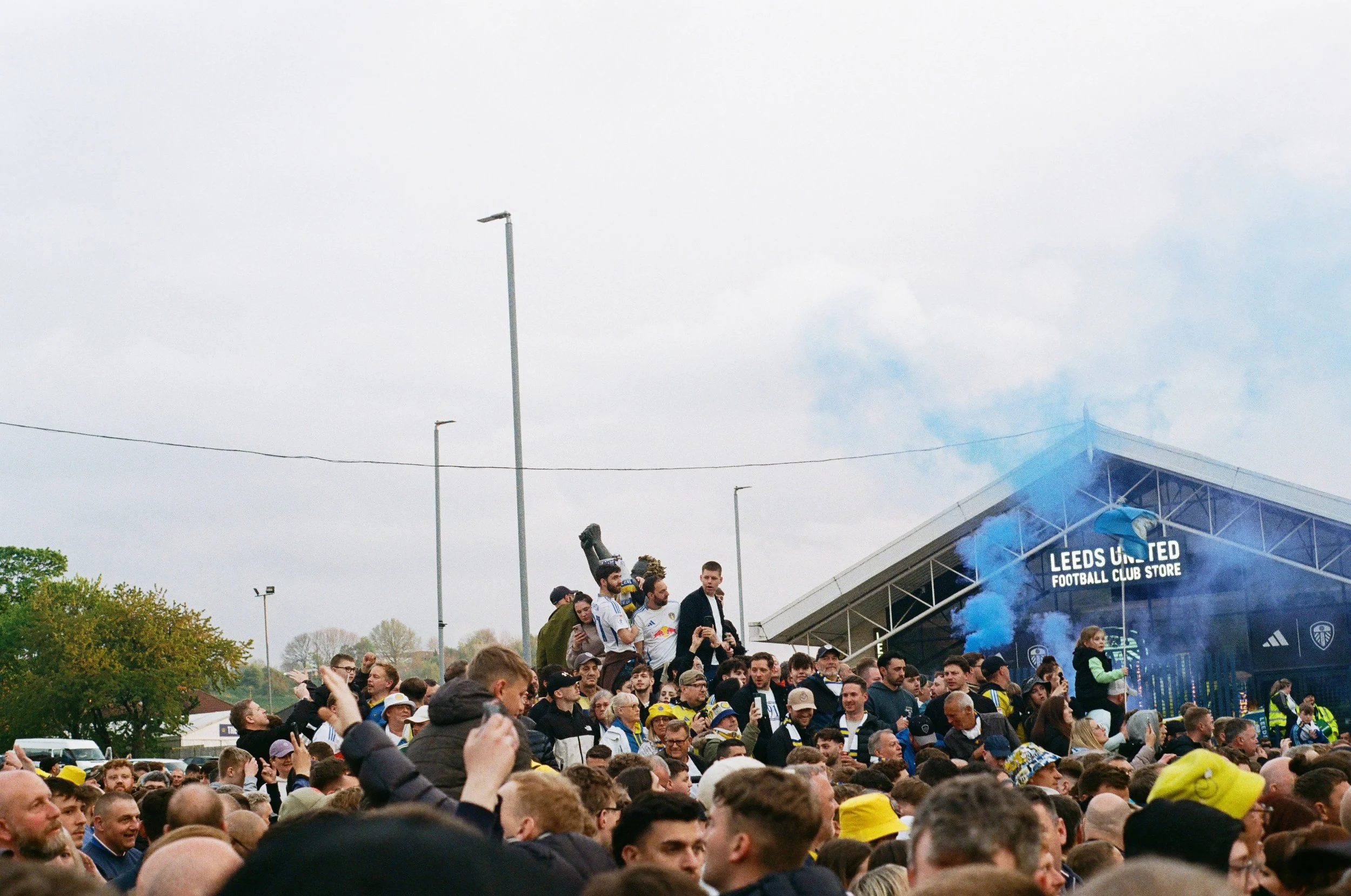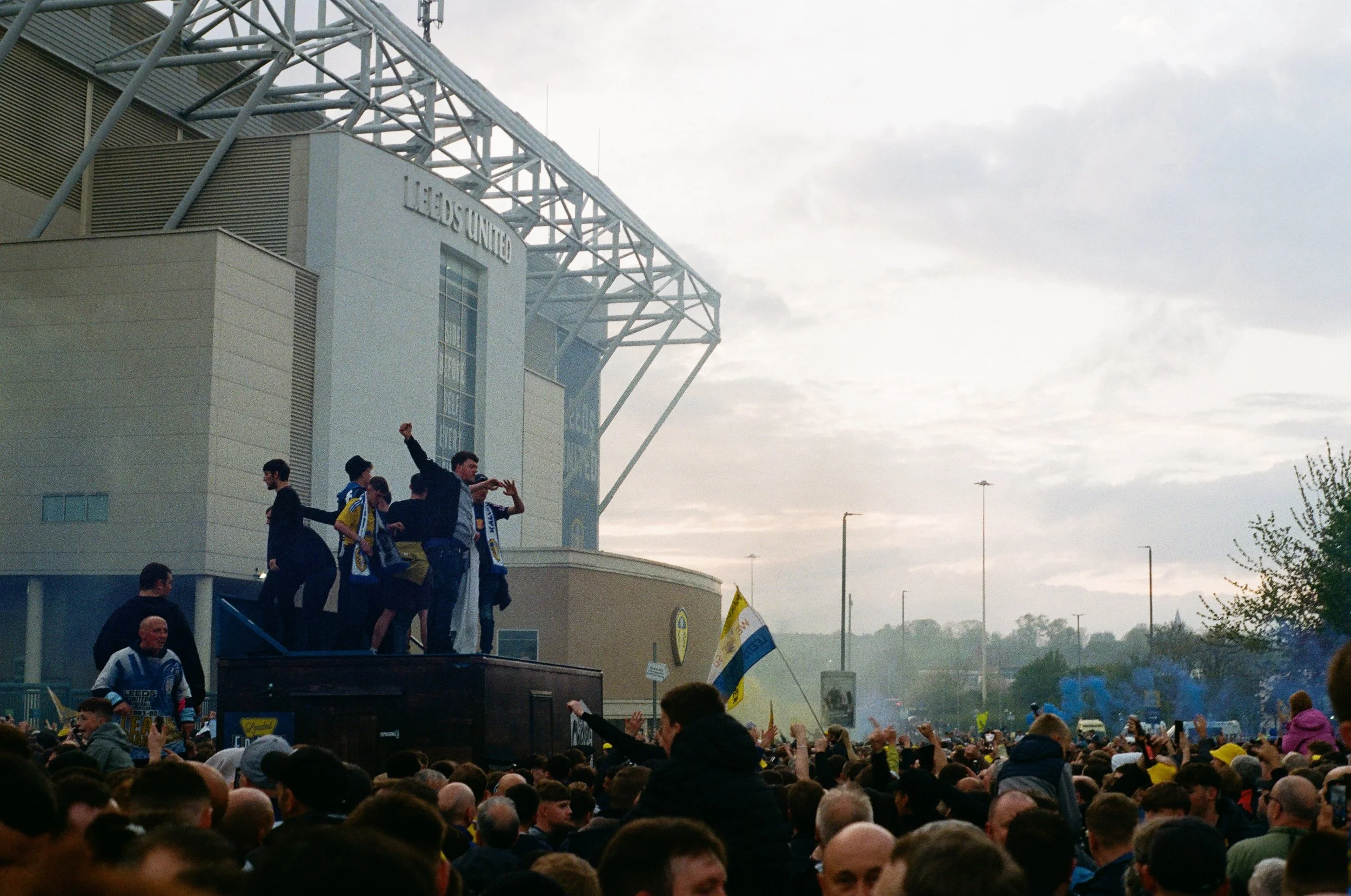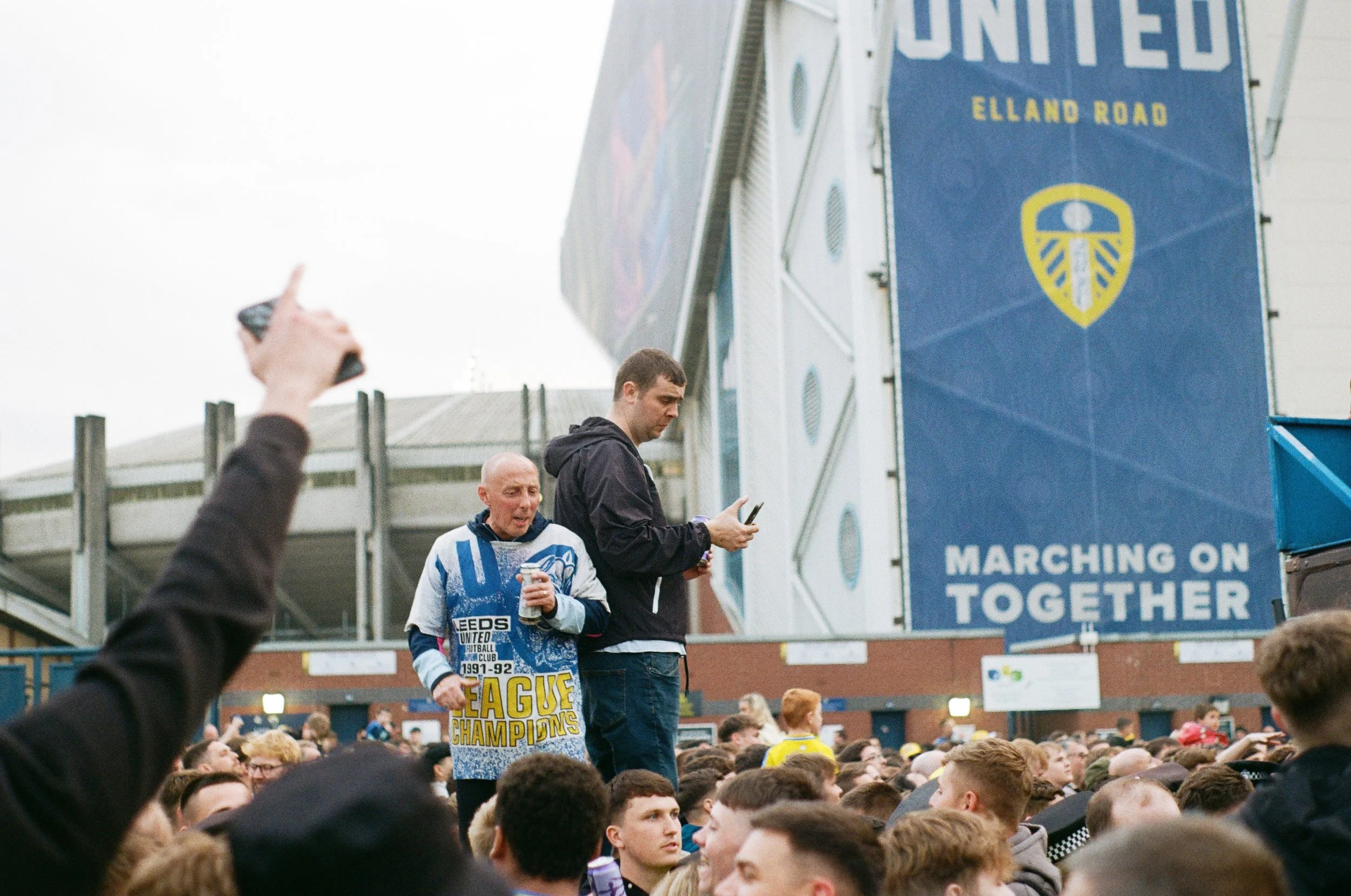 These pictures were taken outside Elland Road, following Leeds’ 6-0 win over Stoke. After leaving the match, I went back to my car, grabbed my film camera (I didn’t want to risk damaging it in the ground) and went to the pub to watch Burnley vs Sheffield United. Burnley’s win secured our promotion, so we headed back down to Elland Road for the promotion celebrations. The only film I had available at the time was Fujifilm 200, and the light was quickly fading so shooting was tricky.