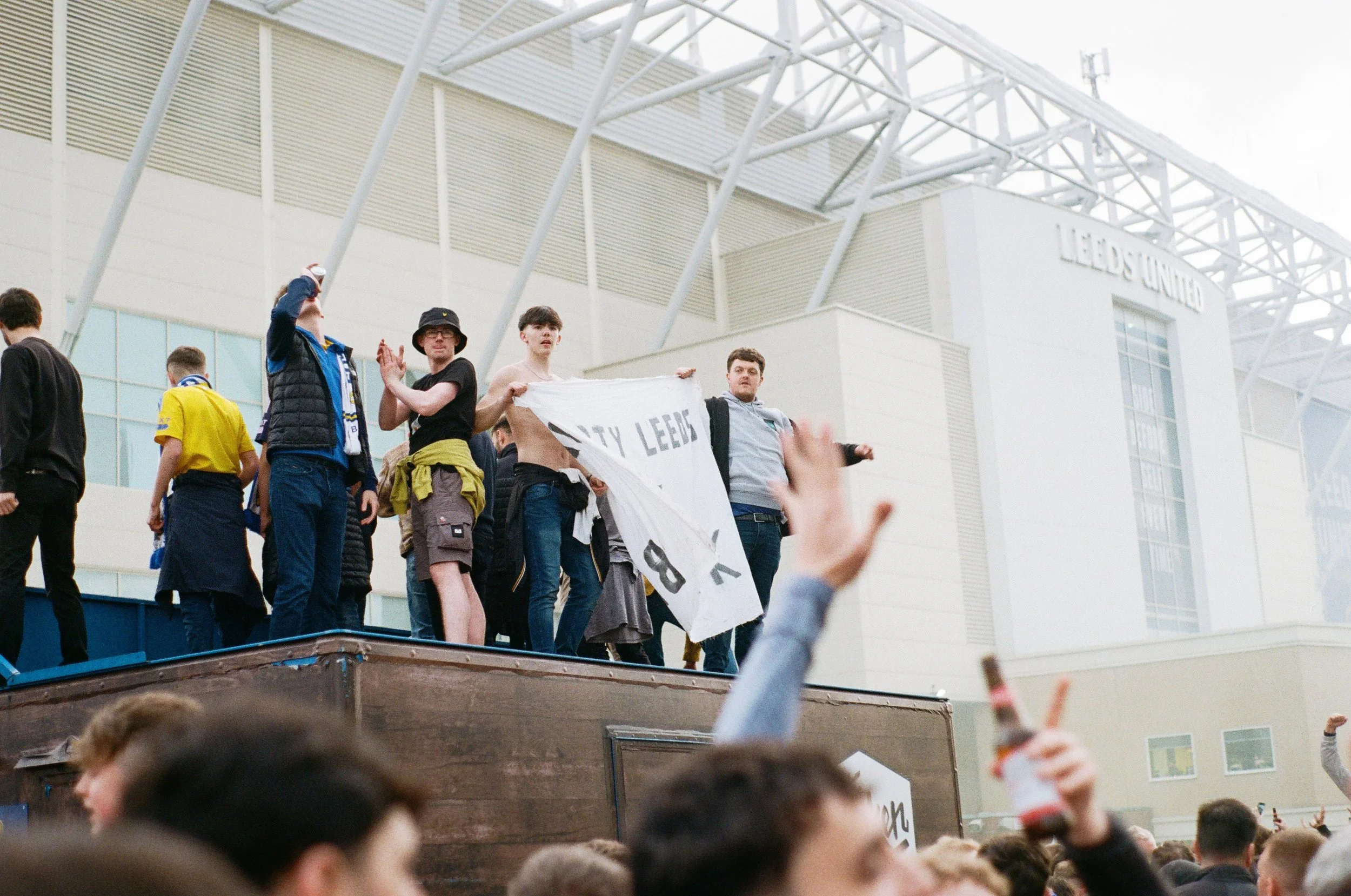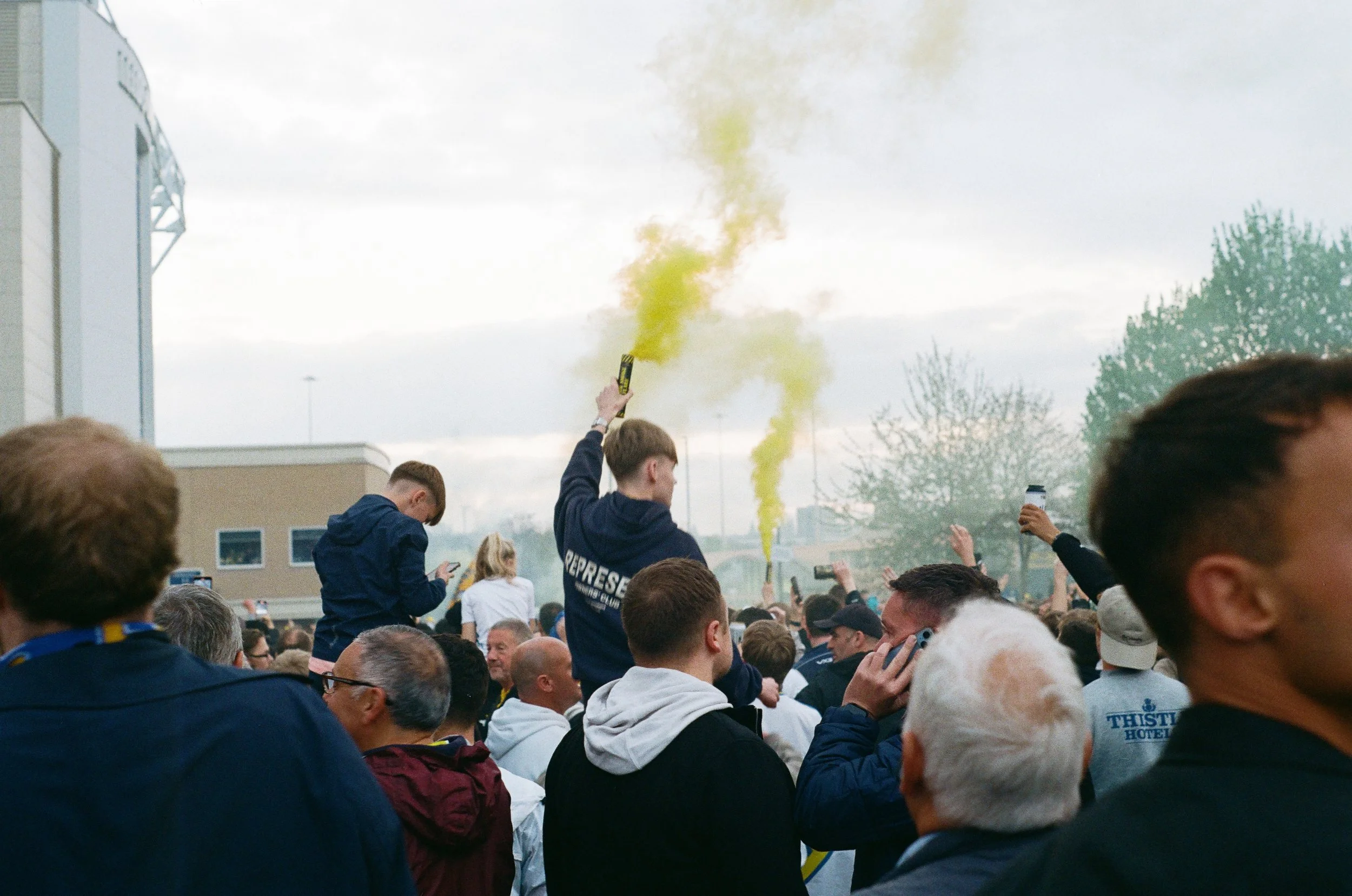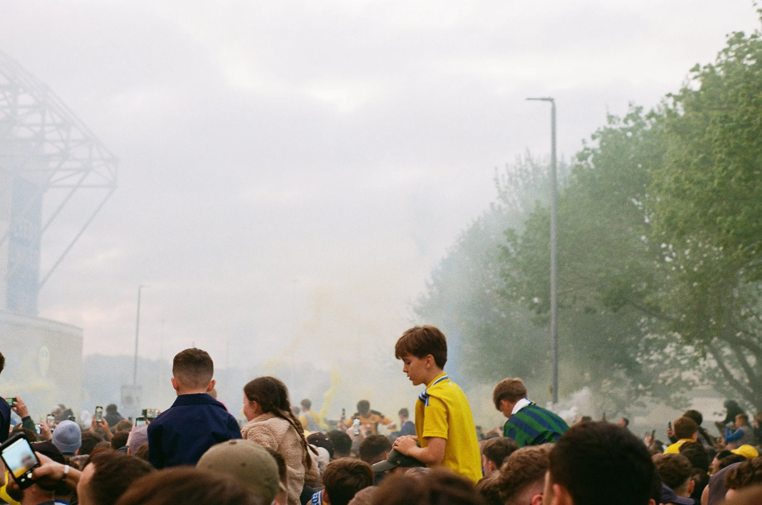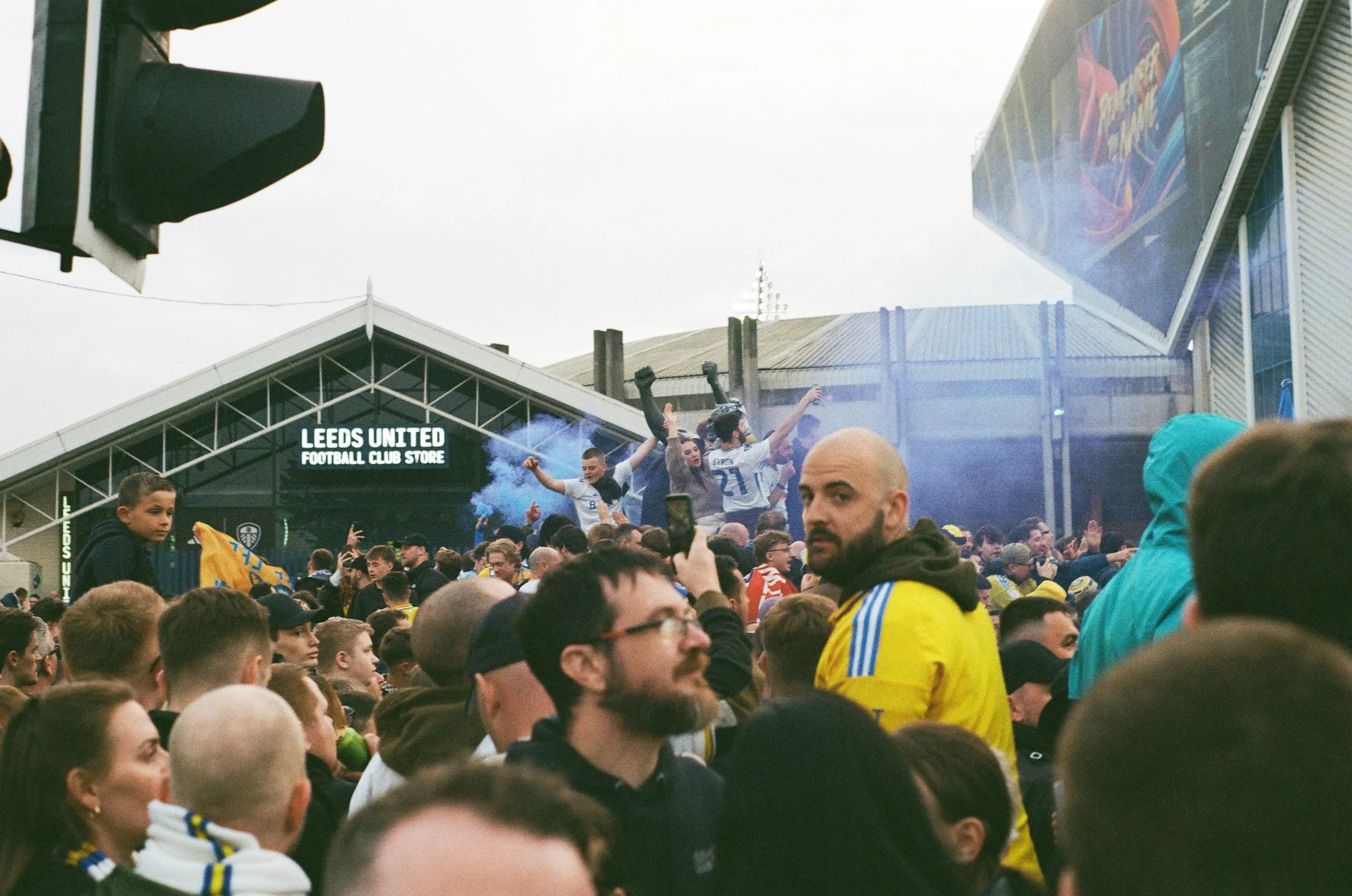 These pictures were taken outside Elland Road, following Leeds’ 6-0 win over Stoke. After leaving the match, I went back to my car, grabbed my film camera (I didn’t want to risk damaging it in the ground) and went to the pub to watch Burnley vs Sheffield United. Burnley’s win secured our promotion, so we headed back down to Elland Road for the promotion celebrations. The only film I had available at the time was Fujifilm 200, and the light was quickly fading so shooting was tricky.